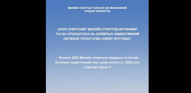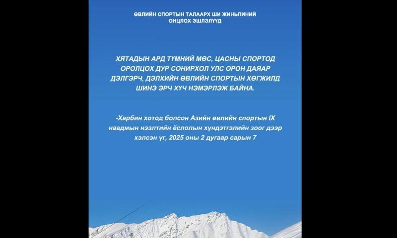 2026 оны Милан–Кортинагийн Өвлийн Олимпын наадам хоёрдугаар сарын 6-нд нээлтээ хийнэ. БНХАУ-ын дарга Ши Жиньпин өвлийн спортын хөгжлийг өндөр ач холбогдолтойд тооцож, илүү олон хүнийг хамруулах зорилтыг онцлон тэмдэглэсээр ирсэн. Ингээд түүний өвлийн спорттой холбоотойгоор хэлсэн зарим гол эшлэлүүдтэй танилцъя.